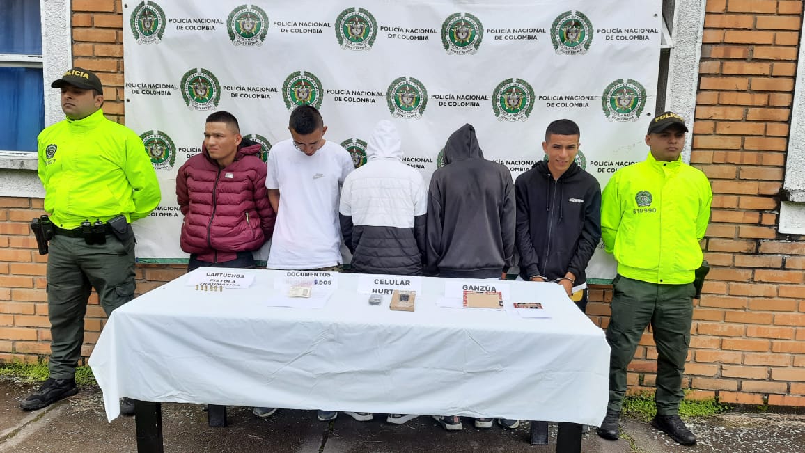 Generadas las órdenes de captura, aprehensión, registro y allanamiento, éstas fueron efectivas en las últimas horas en los barrios Popular, Los Pinos y La Esperanza, dejando como resultado la captura de JUAN CAMILO RODRÍGUEZ RIVERA de 25 años, alias “Mesías”, líder de la banda, BRANDON STIVEN ALVARADO ARTUNDUAGA de 20 años, alias “Mojarro” y dos adolescentes conocidos como “Pecoso” y “Caricortado”. Así mismo, fue capturado un hombre conocido como “Castillo” por el delito de receptación, luego que se le hallara un celular hurtado, el cual fue robado hace unos días en medio de un atraco en el barrio Santa Mónica, donde la víctima resultó herida con un arma fuego, una mujer de 71 años de edad.