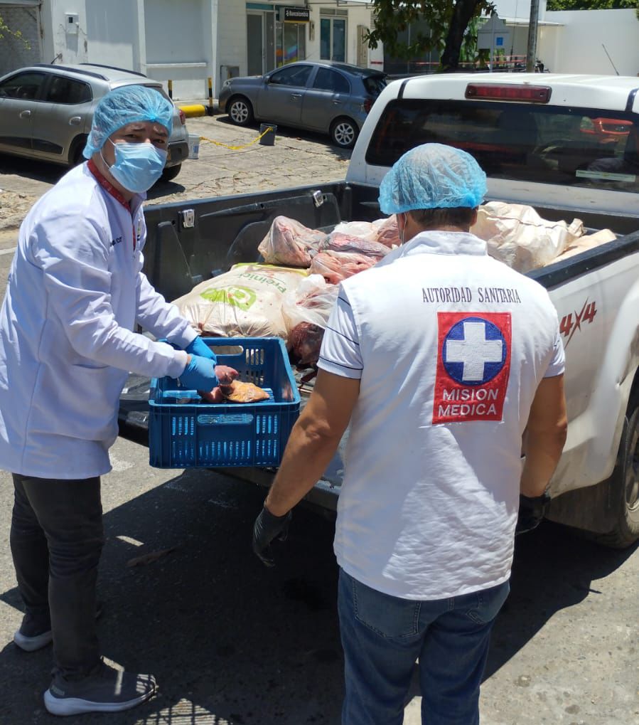 Ante esta situación, las autoridades sanitarias procedieron al decomiso de un total de 569.7 kilogramos de carne y productos cárnicos que no cumplían con los estándares exigidos, evitando así riesgos para la salud de los consumidores.