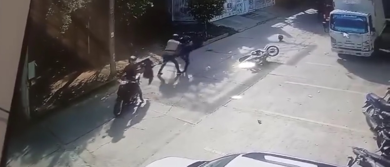 En la huida uno de los delincuentes escapa en la motocicleta, mientras la victima procede a enfrentar al otro delincuente quien deja caer la motocicleta en la que se desplazaba y huye del lugar siendo perseguido por la comunidad y los empleados al parecer del supermercado donde más adelante proceden a capturarlo.