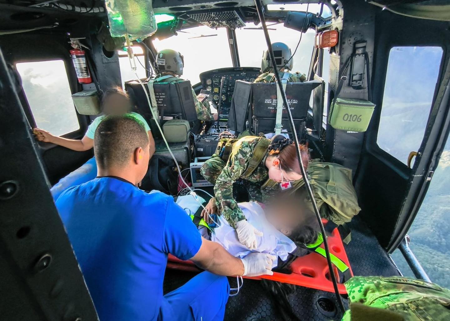 De inmediato, con el apoyo del Batallón de Movilidad y Maniobra de Aviación N.º 5, se trasladó una unidad médica hasta la zona para evacuar vía aérea a la menor que presenta amputación de la pierna derecha.