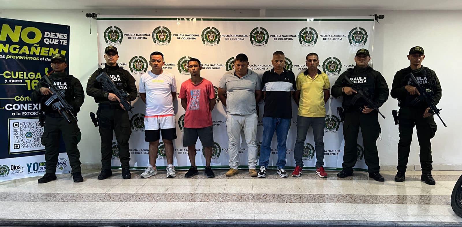 Uniformados del Grupo GAULA de la Policía Nacional, en coordinación con unidades de la Policía Metropolitana de Neiva y la Fiscalía General de la Nación, llegan hasta las comunas 6 y 7 de la capital Opita, donde logran la captura con orden judicial y mediante allanamiento de Martín Eduardo García Morales “Martin o Jose” Cabecilla, Carlos Eduardo Romero Cleves “Jeringa”, Milcíades Marín Marín «Milcíades» Dagoberto Valderrama Cruz «Dago» y Álvaro Rojas Luna «Alvarito», quienes son requeridos por las autoridades