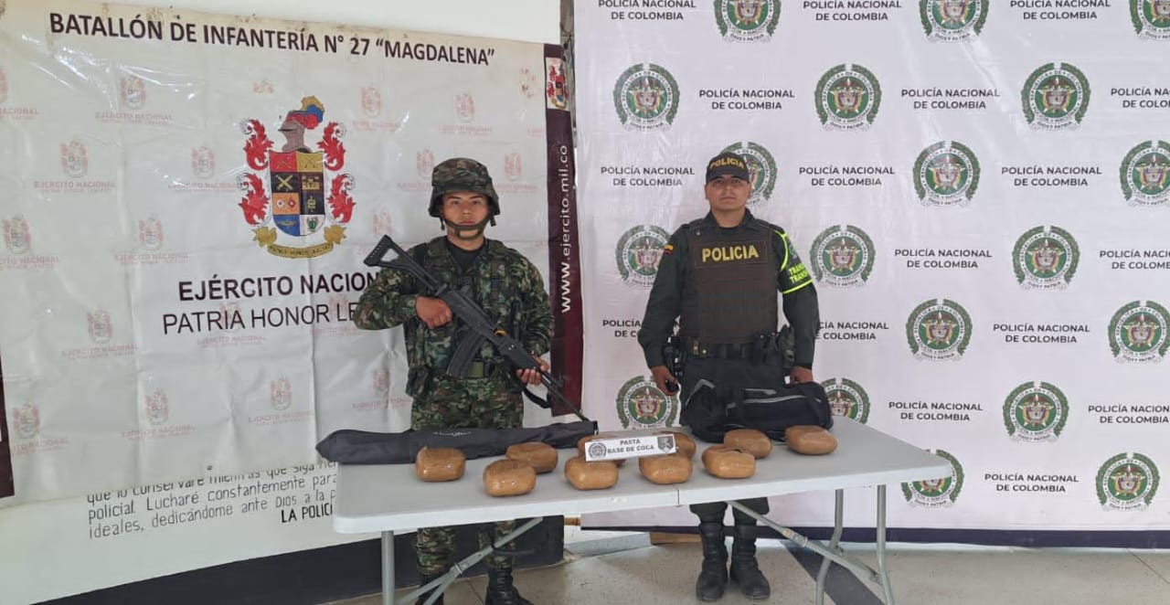 En una operación coordinada entre tropas del Batallón Magdalena, de la Novena Brigada del Ejército y la Seccional de Tránsito y Transporte de Policía, Huila, se logró la incautación de más de 10 kilogramos de pasta base de coca en la vereda El Cedro, corregimiento de Bruselas, en el municipio de Pitalito.