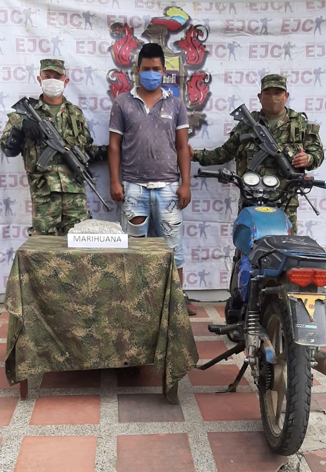 Se procede a realizar la captura del señor Diego Armando Triana, presunto responsable del delito de Tráfico, Fabricación o Porte de Estupefacientes y quien posteriormente es puesto a disposición de las autoridades competentes.