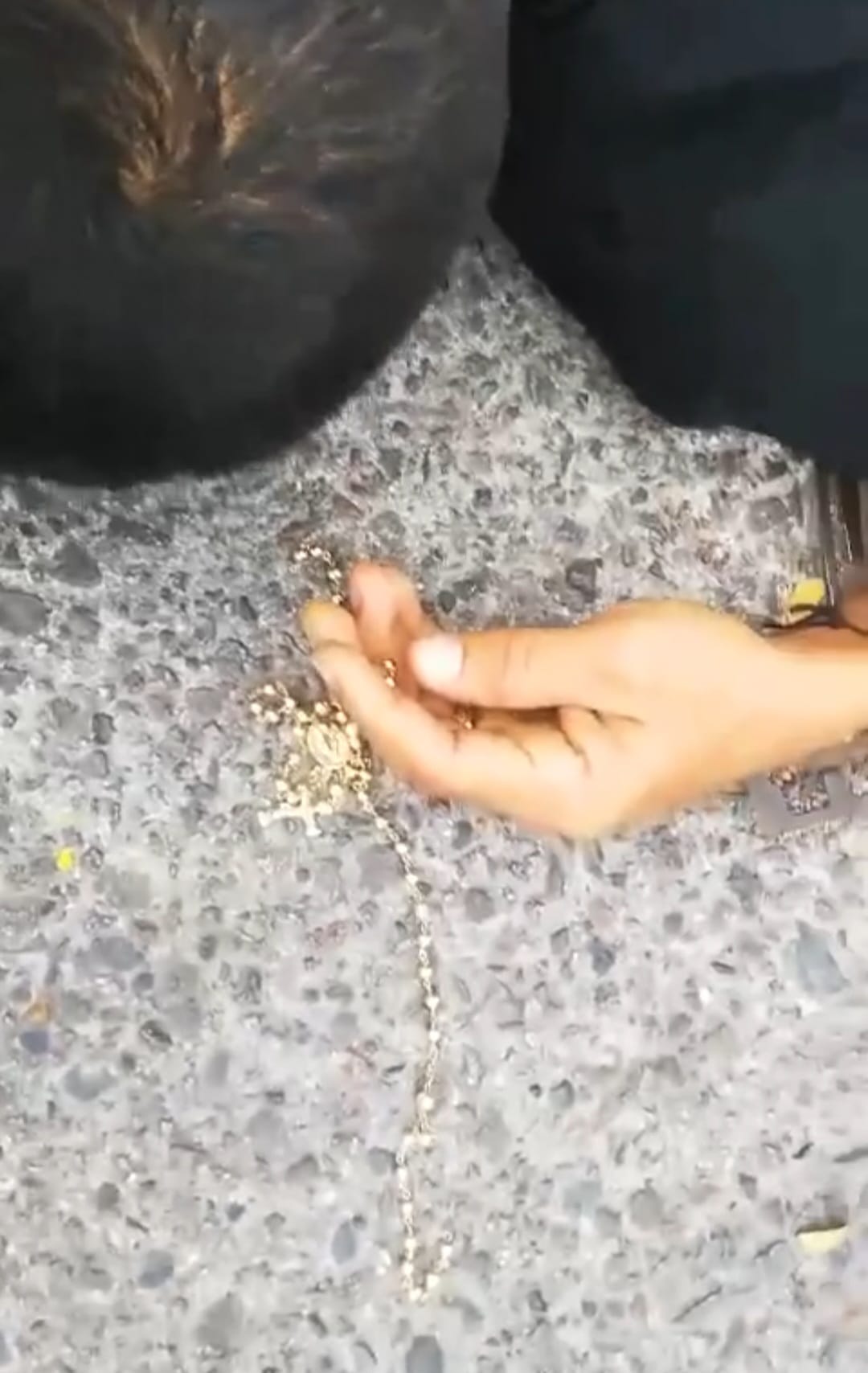 Cómo se puede observar en un vídeo que está circulando en redes sociales y en imágenes, al sujeto se le puede observar en una de sus manos la cadena de oro.