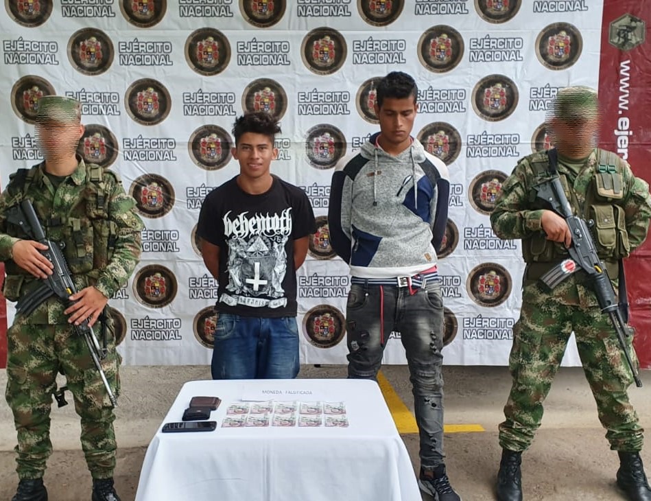 En un trabajo realizado por tropas del Batallón de Alta Montaña n° 9 de la Novena Brigada y efectivos de la Sijin del Departamento de Policía Huila, se logró neutralizar la presunta distribución de billetes falsos, gracias a la captura de dos hombres que tenían en su poder 10 billetes en denominación de 50 mil pesos cada uno.
