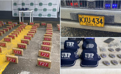 Según esta misma entidad, aparte de la cocaína, dentro de la camioneta también hallaron gorras, placas y otros elementos de la UNP.
