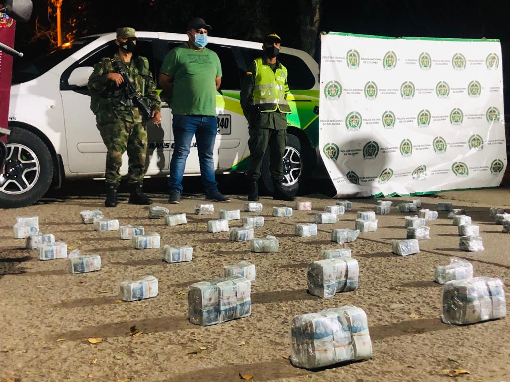 Tras la inspección minuciosa, se evidenció modificaciones en las puertas del vehículo, hallando allí un total de 68 paquetes de billetes de baja denominación de moneda colombiana que se encontraban forrados en plástico negro, sin que el conductor lograra justificar la procedencia y legalidad del mismo.