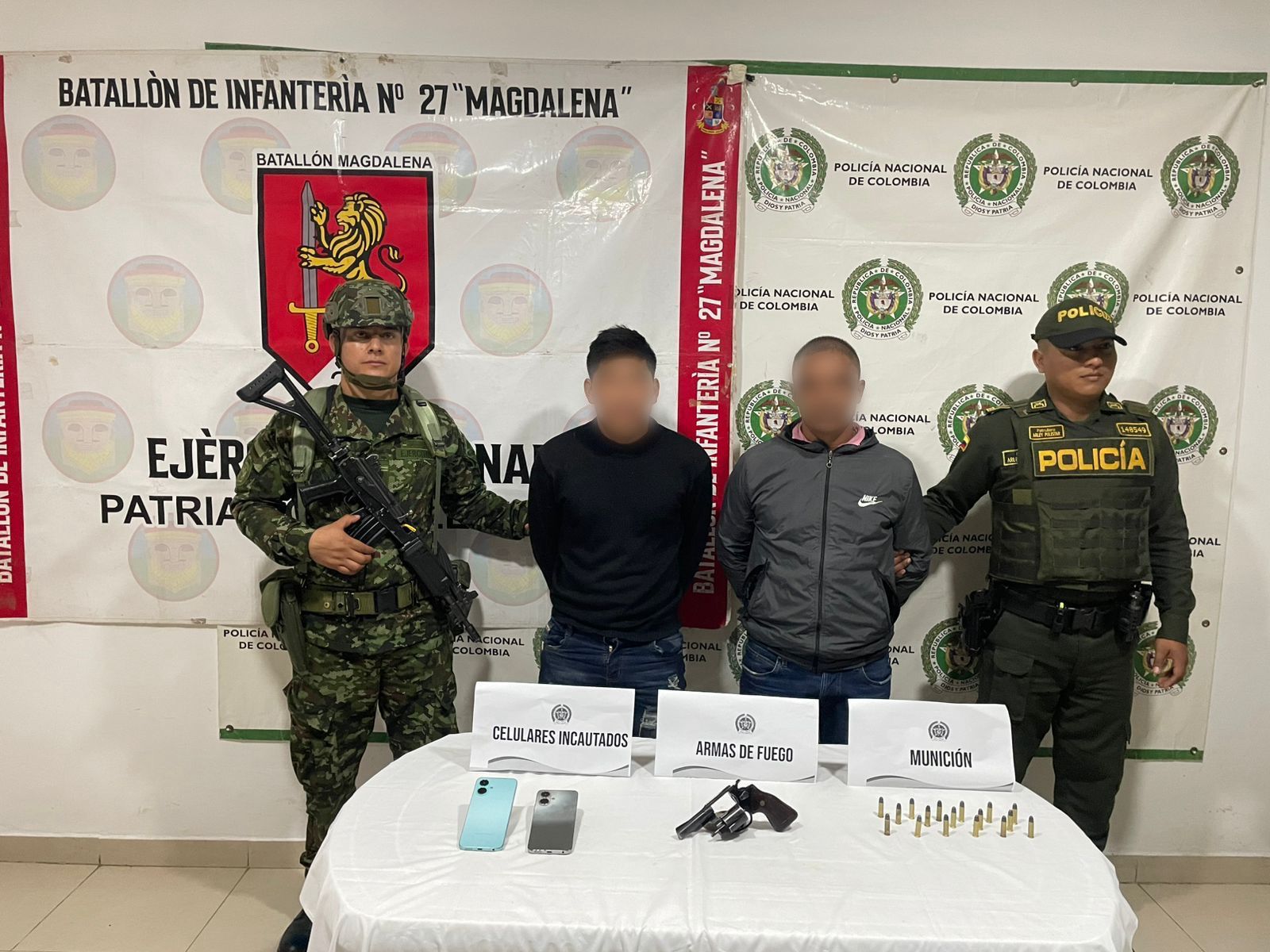 Entre los capturados se encuentran alias “Plazitas” o “Preguntón”, señalado como cabecilla de finanzas de esta organización, y alias “Rafa”, integrante del mismo grupo. Ambos eran requeridos por las autoridades judiciales por los delitos de homicidio, terrorismo, concierto para delinquir, extorsión y porte ilegal de armas de fuego.