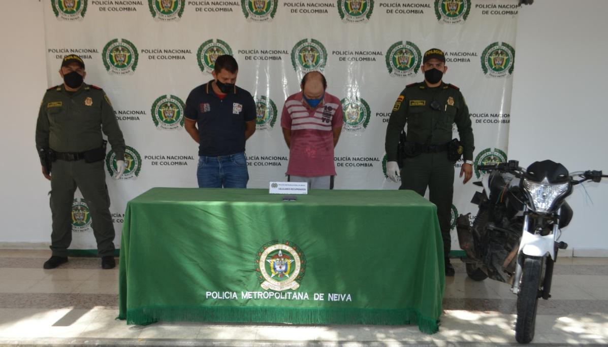 Es asi como uniformados del cuadrante 14 del CAI Estadio, en desarrollo de actividades de registro y control en el barrio Guaduales de la ciudad de Neiva, y en respuesta oportuna a denuncia ciudadana, logran la captura de Luis Angel Ballesteros Triana de 31 años de edad, residente en el barrio Villa del Prado y de Alvaro Andres Polanco Triviño de 36 años de edad, residente en Villa Amarilla.