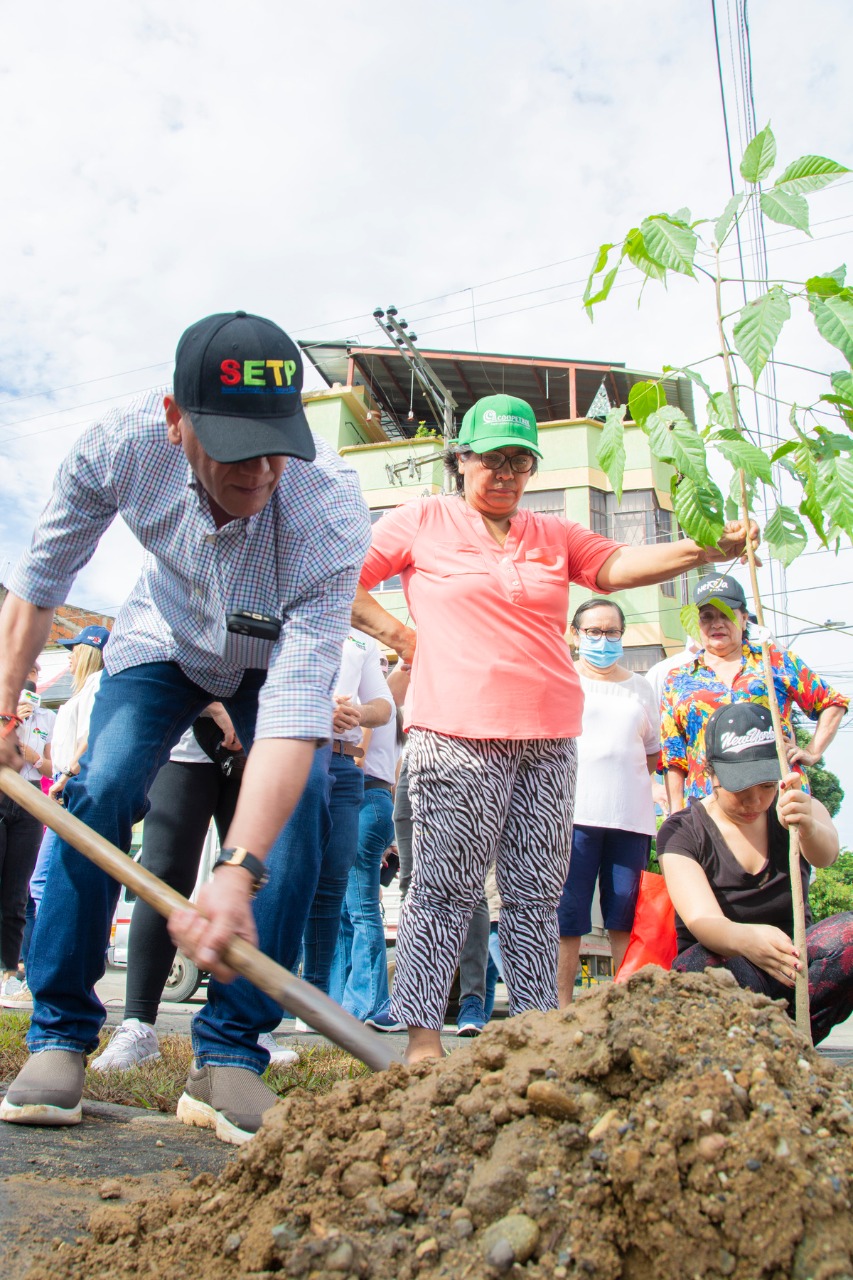 “Hoy se inició con la siembra de 125 individuos arbóreos en este sector, recordemos que aquí por las obras y la implementación del perfil vial surgió la necesidad de talar 44 árboles. Entonces realizamos la segunda parte de la compensación ambiental, iniciada hace unos meses en la ladera del río Las Ceibas. Hemos sembrado cerca de 20 árboles por cada árbol talado”, afirmó el gerente del SETP, Faiber Sandoval Cumbe.