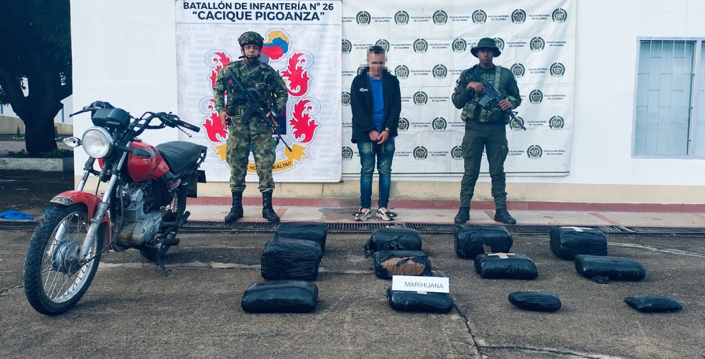 La operación de captura tuvo lugar en la vereda El Dinde, municipio de La Plata. Además de la incautación de los 40 kilogramos de marihuana, se capturó a un individuo y se inmovilizó la motocicleta utilizada para el transporte ilegal.