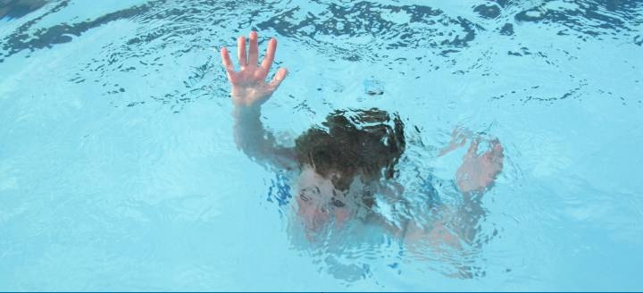 Al parecer por el descuido de su familia, el infante se golpeó en la cabeza y cae a la piscina.