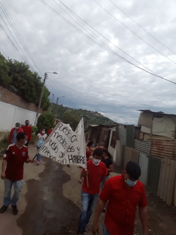Cumpliendo con las medidas de protección y vestidos de rojo como señal de la dificultad que pasan durante el aislamiento, cerca de cien personas en Neiva manifiestan a esta hora argumentando que aún esperan las ayudas prometidas por parte de la alcaldía.