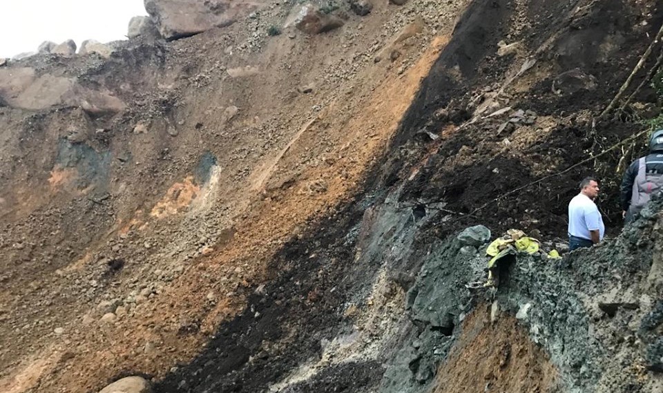 A raíz de las intensas lluvias que se han estado precipitando en la región limítrofe del Huila y Cauca, se produjo un inmenso deslizamiento a la altura del sector conocido como Los Alpes, que destruyó por completo la banca de la carretera.
