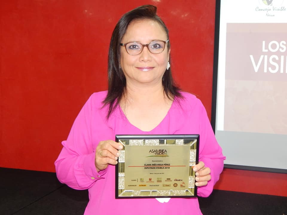En el auditorio principal de la Cámara de Comercio de Neiva, se adelantó el evento de reconocimiento de Concejal y Diputado Visible 2018. La alianza entregó el reconocimiento como Diputada Visible a Clara Vega.