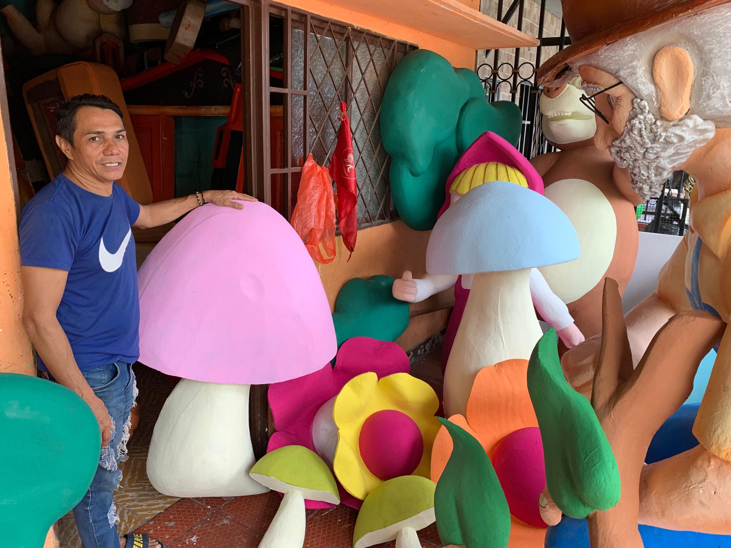“Yo llevo vinculado con el Festival hace más de 20 años, comencé como parejo oficial y finalmente terminé haciendo carrozas porque mi pasión es el Festival. El tiempo estimado del proceso, desde que nos convocan a la convocatoria, después se pasan los proyectos con los temas asignados y las seleccionadas deben de ser elaboradas para el Festival”, José Elias Barrera, carrocero ‘Hongos y Hadas’.