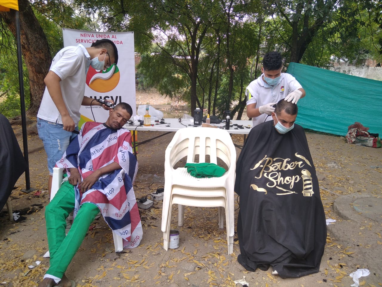 Unas 150 personas, recibieron una jornada de aseo, peluquería, cambio de ropa, alimentación, chequeo médico y atención integral, en un trabajo interinstitucional al que se vinculó la Policía Antinarcóticos, con el objetivo de dignificar su condición como parte de la política humanista de La Administración Municipal Primero Neiva.