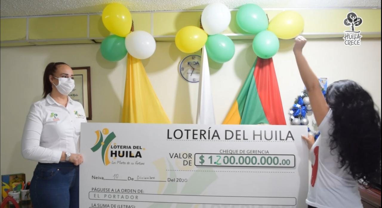 La gerente de la Lotería del Huila, Alba Luz Molina, hizo la entrega del cheque por $1200 millones, y manifestó: “Quiero informar a toda la ciudadanía huilense y a todos los apostadores a nivel nacional, que se entregó el Premio mayor, e igualmente quiero invitarlos para que compren el billete y pueda ser el siguiente ganador”. Además de esto, recordó a los compradores que pueden participar en la rifa con la compra de los billetes completos de la Lotería del Huila hasta el 26 de enero 2021, para ganar un auto, “Usted puede ser el ganador del espectacular Kia Picanto cero kilómetros, no olviden guardar los billetes, por que el 26 de enero estará jugando este carro e igualmente se estará entregando”.